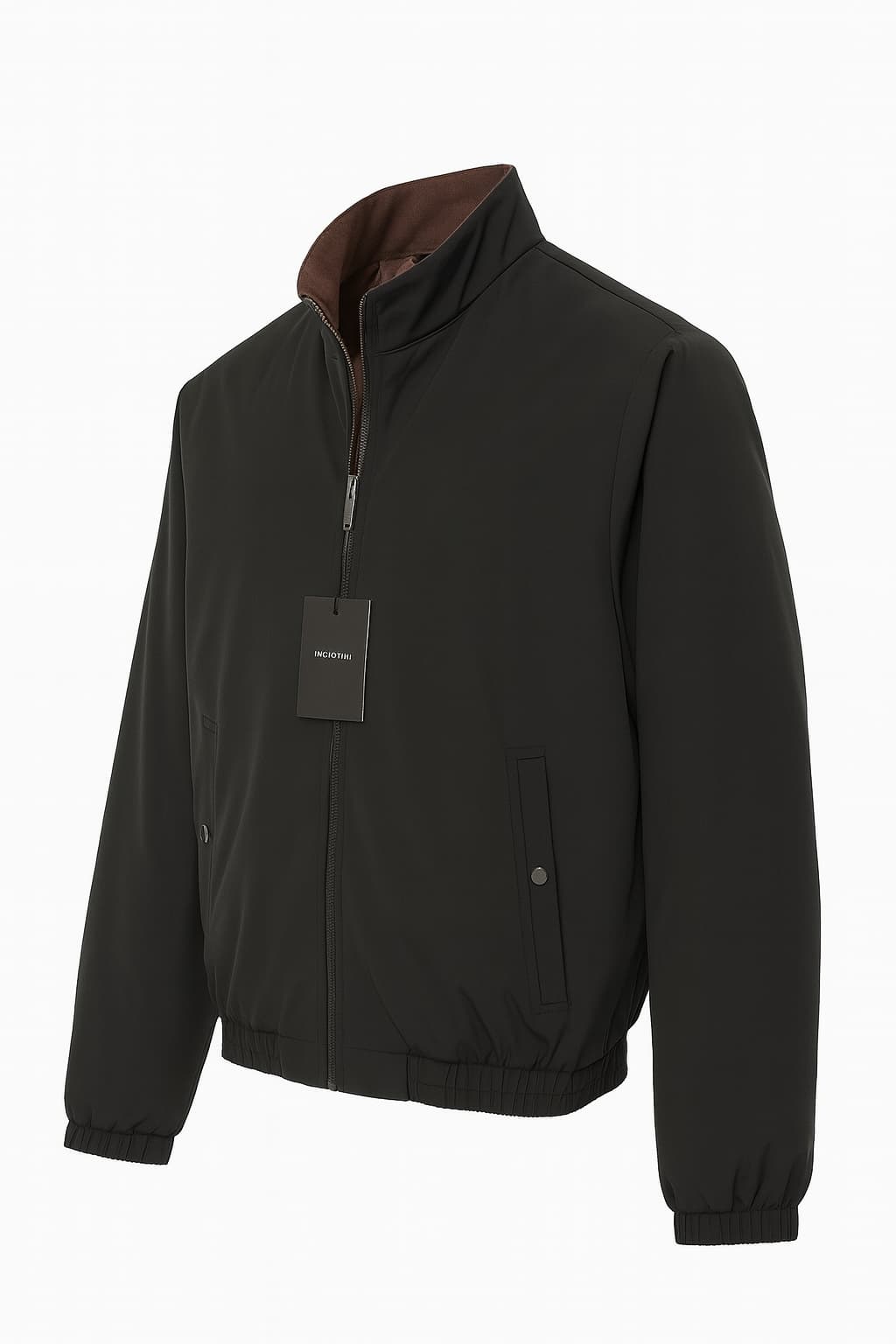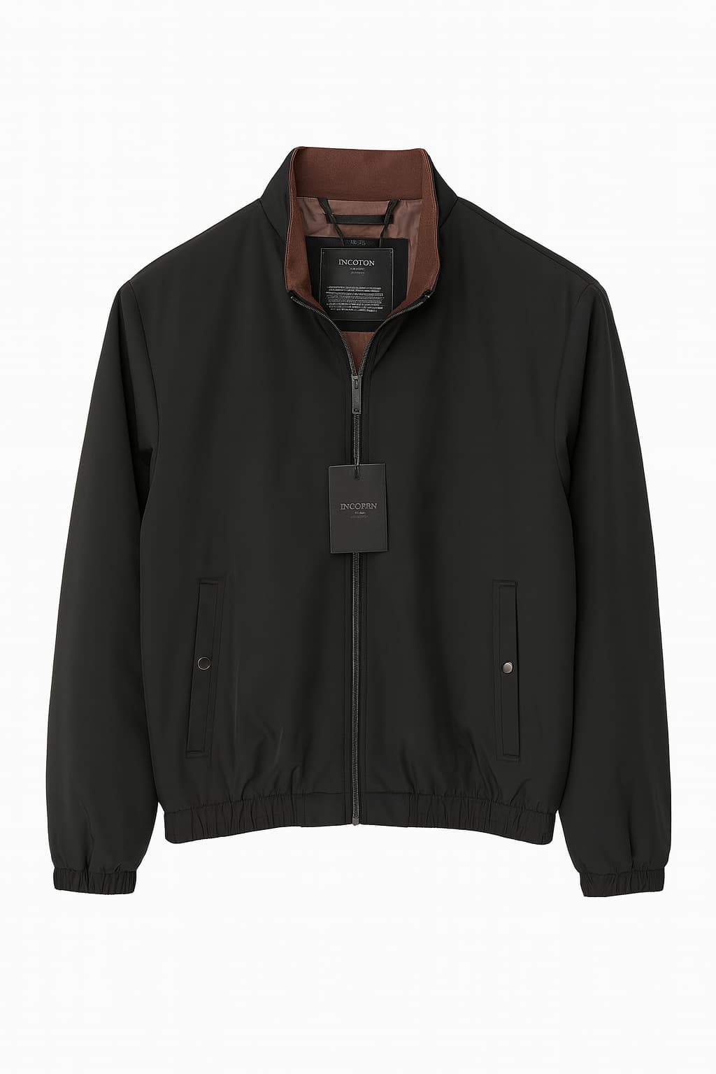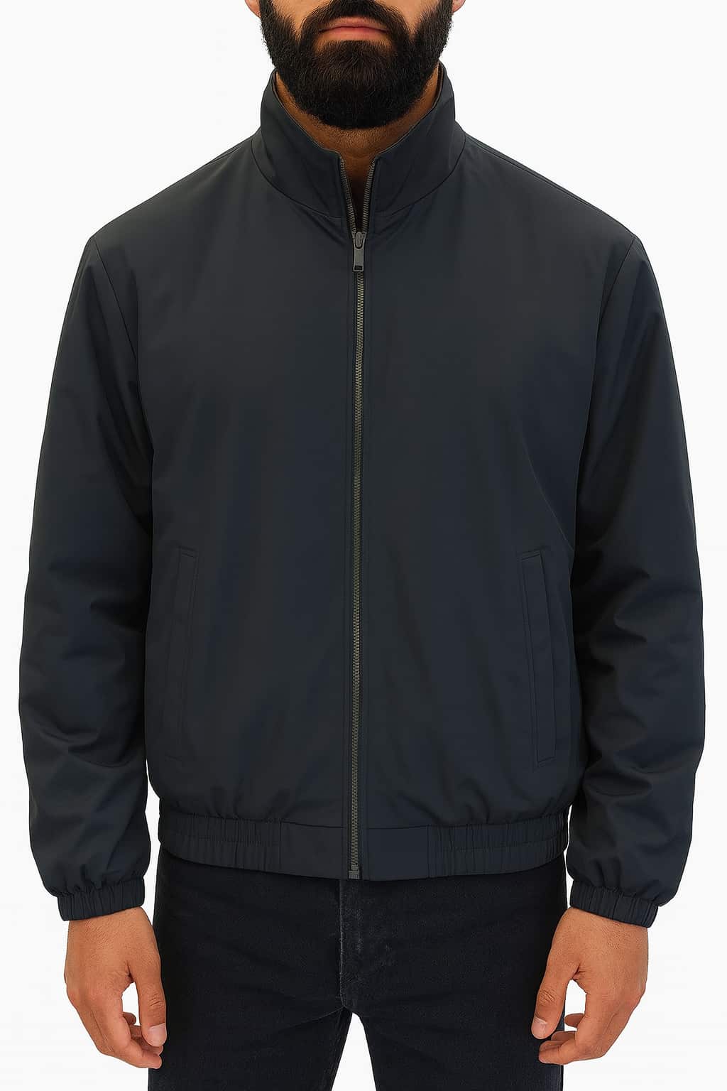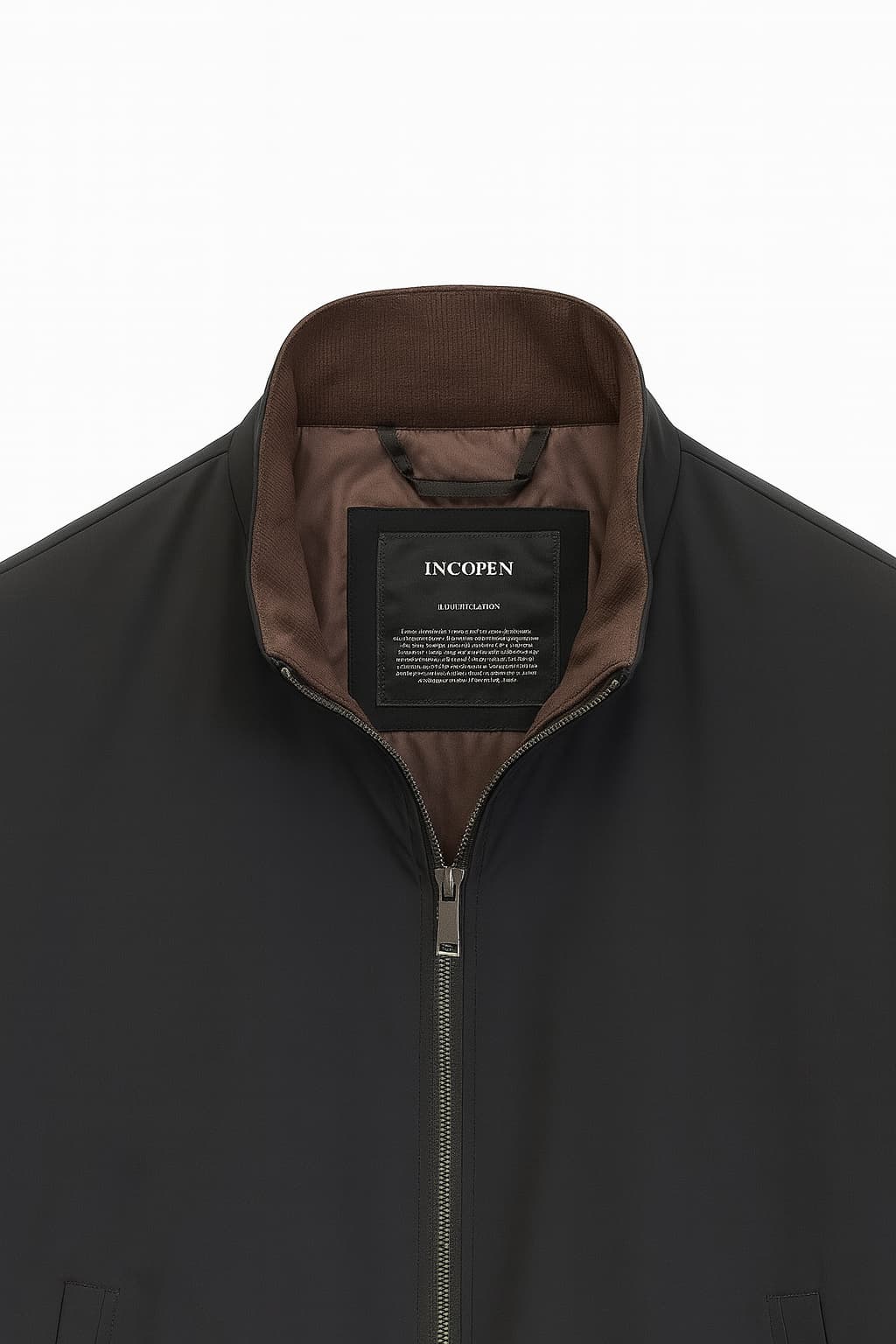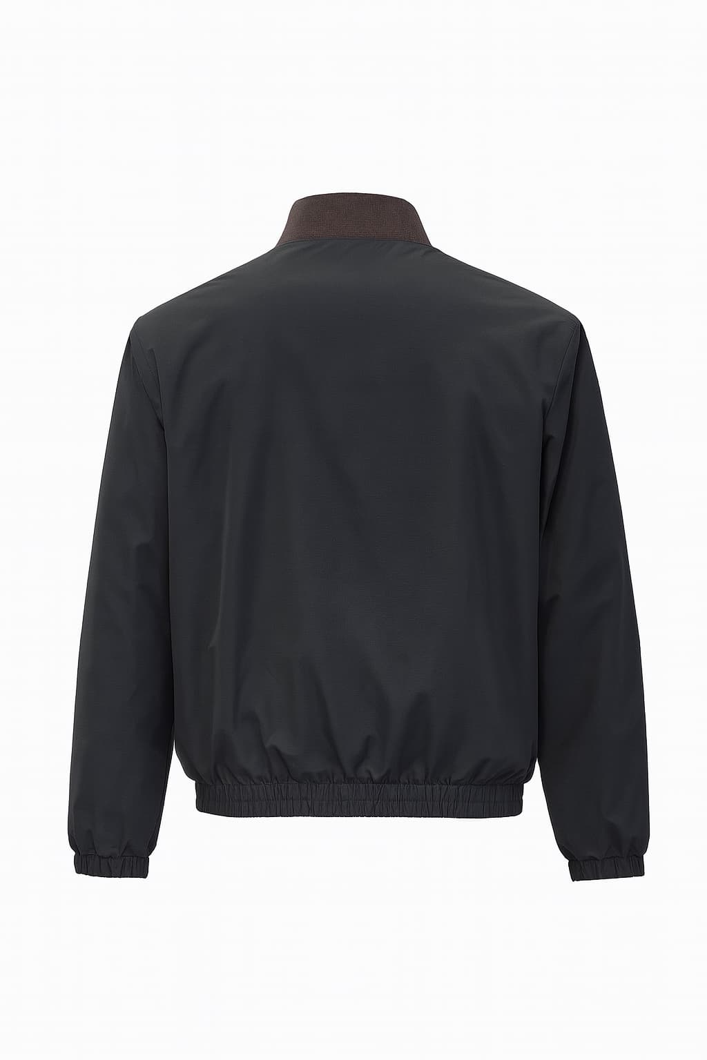 Посадка куртки универсальная и современная — слегка свободная, но структурная, подчёркивающая линию плеч и остающаяся удобной при движении. Эластичная нижняя кромка и манжеты создают идеальную посадку и защищают от продувания, сохраняя чистый, собранный вид. Куртка легко сочетается с классическими брюками, денимом и повседневными образами, оставаясь актуальной в любой ситуации — от деловых встреч до вечерних прогулок. Внутренняя подкладка имеет мягкую текстуру с благородным коричневым оттенком, подчёркивающим премиальный характер изделия. Воротник выполнен в комбинированном исполнении: внешняя часть сохраняет строгий силуэт, а внутренняя ребристая отделка добавляет тепла и комфорта в прохладную погоду. Застёжка-молния работает мягко и плавно, визуально вытягивая силуэт, а скрытые боковые карманы аккуратно вписываются в линию кроя, оставаясь функциональными и незаметными.