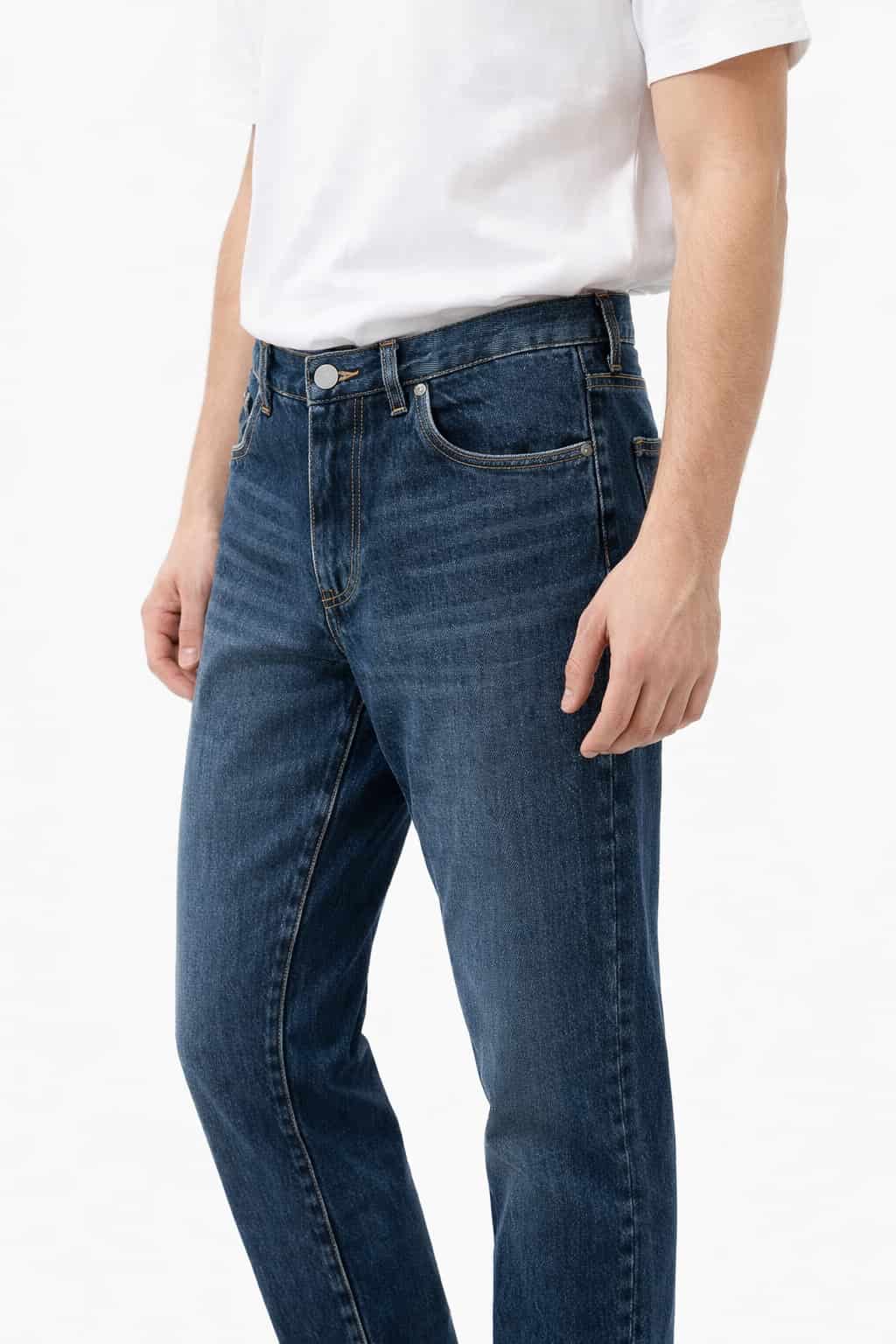 Посадка комфортная, с аккуратной линией талии, джинсы хорошо сидят по фигуре, не стесняя движений и сохраняя форму в течение дня. Прямой крой визуально вытягивает силуэт и делает модель универсальной для разного типа обуви — от кроссовок до кожаных туфель. Классическая конструкция с пятью карманами, прочной металлической фурнитурой и аккуратной контрастной строчкой подчёркивает надёжность и практичность изделия. Ткань приятна на ощупь, достаточно плотная для долговечной носки, при этом комфортная в течение всего сезона.