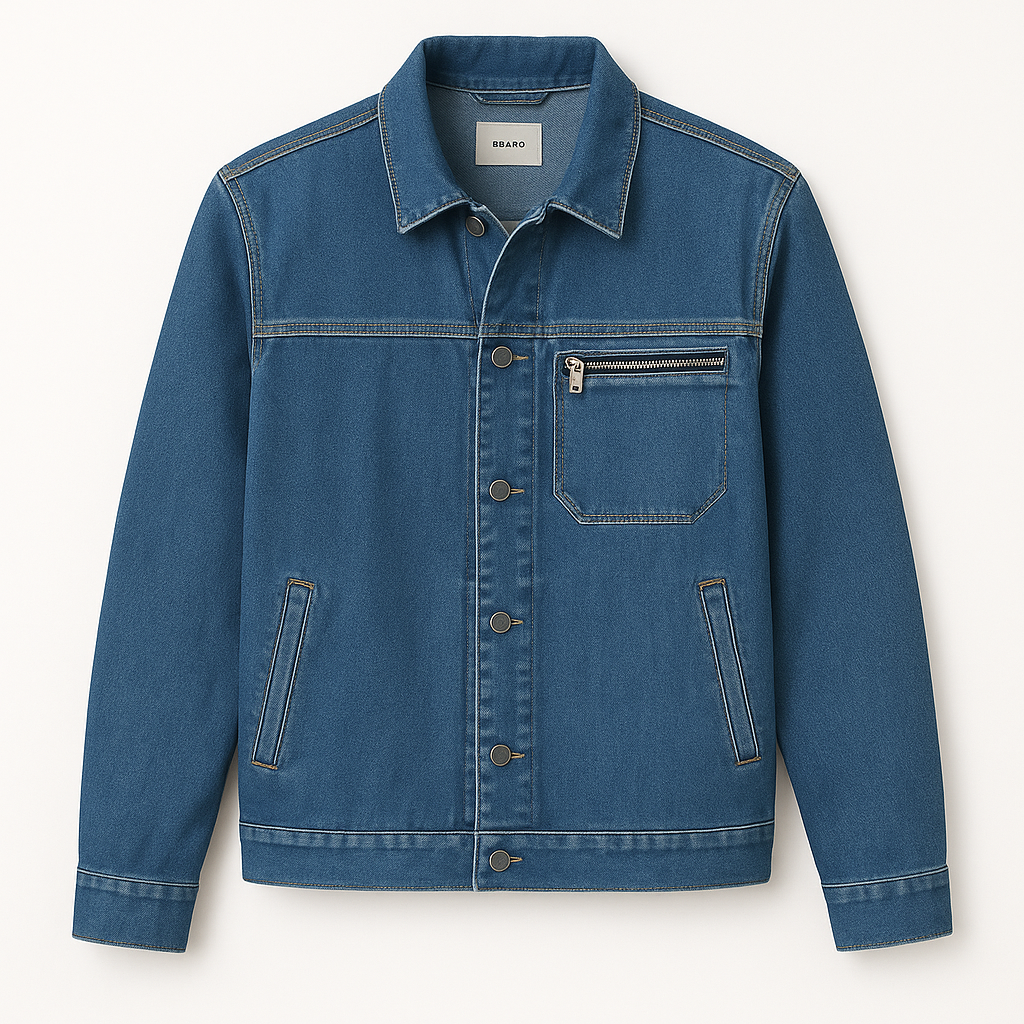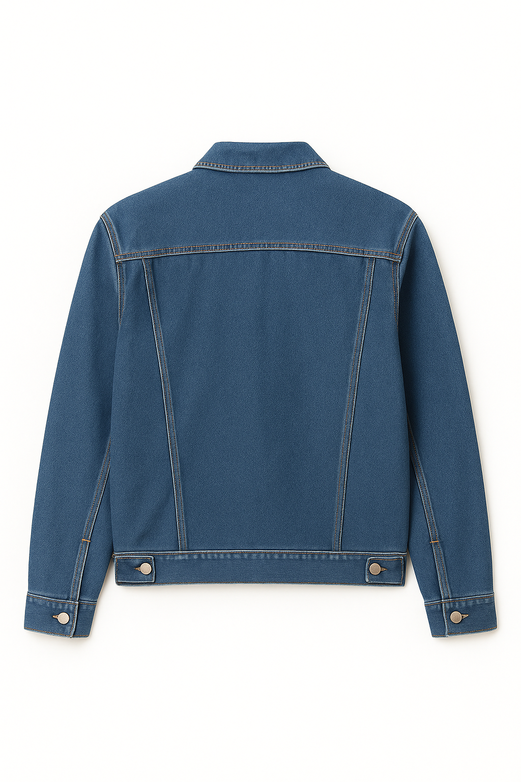 Классический мужской джинсовый пиджак из плотного денима средней насыщенности. Выполнен в прямом крое с аккуратными контрастными швами, которые подчёркивают форму изделия. Сзади дизайн лаконичный и строгий, без лишних деталей — только чёткие линии и идеальная посадка по фигуре.