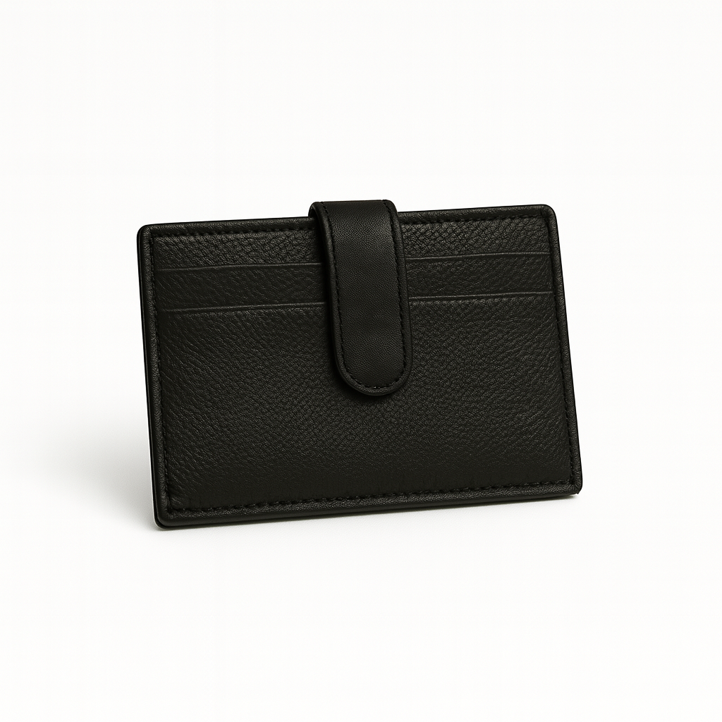 Особенность: закрывается на аккуратную кожаную застёжку с кнопкой, которая фиксирует карты и предотвращает их выпадение.