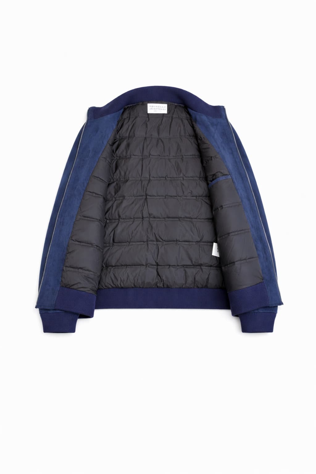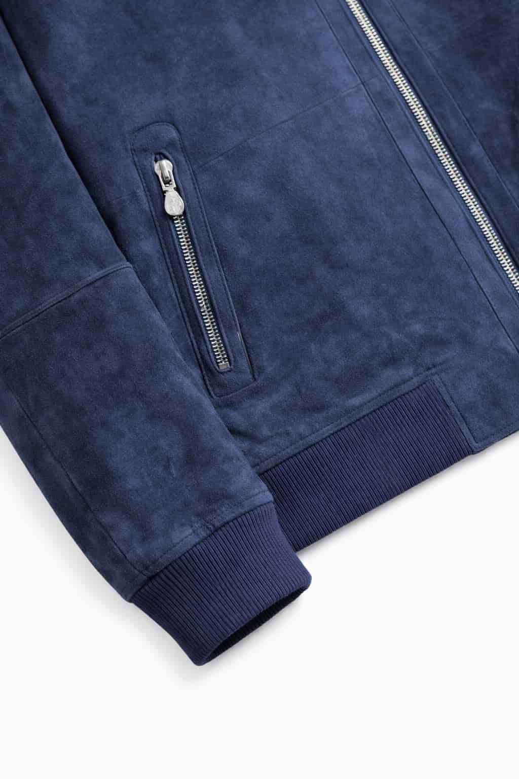 Эта куртка выполнена из мягкой искусственный замши глубокого синего оттенка и создана для тех, кто ценит сдержанную элегантность и безупречное качество в повседневном гардеробе.