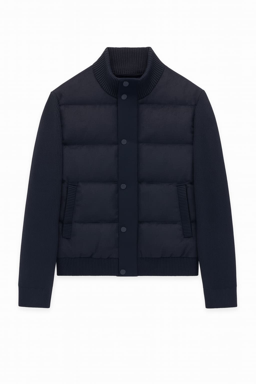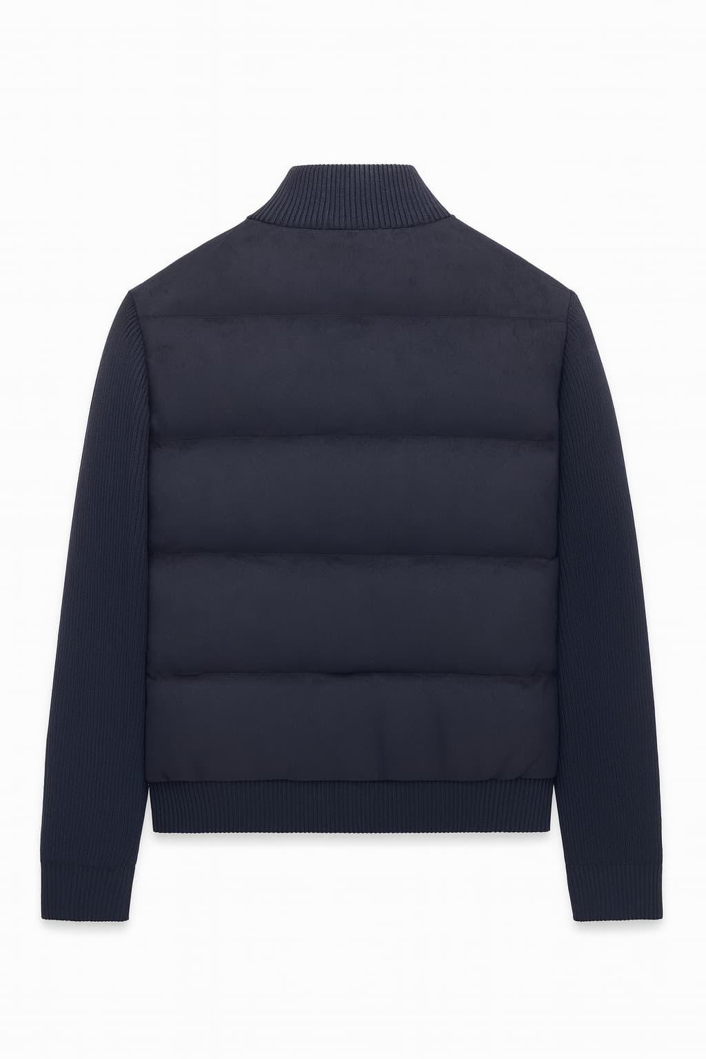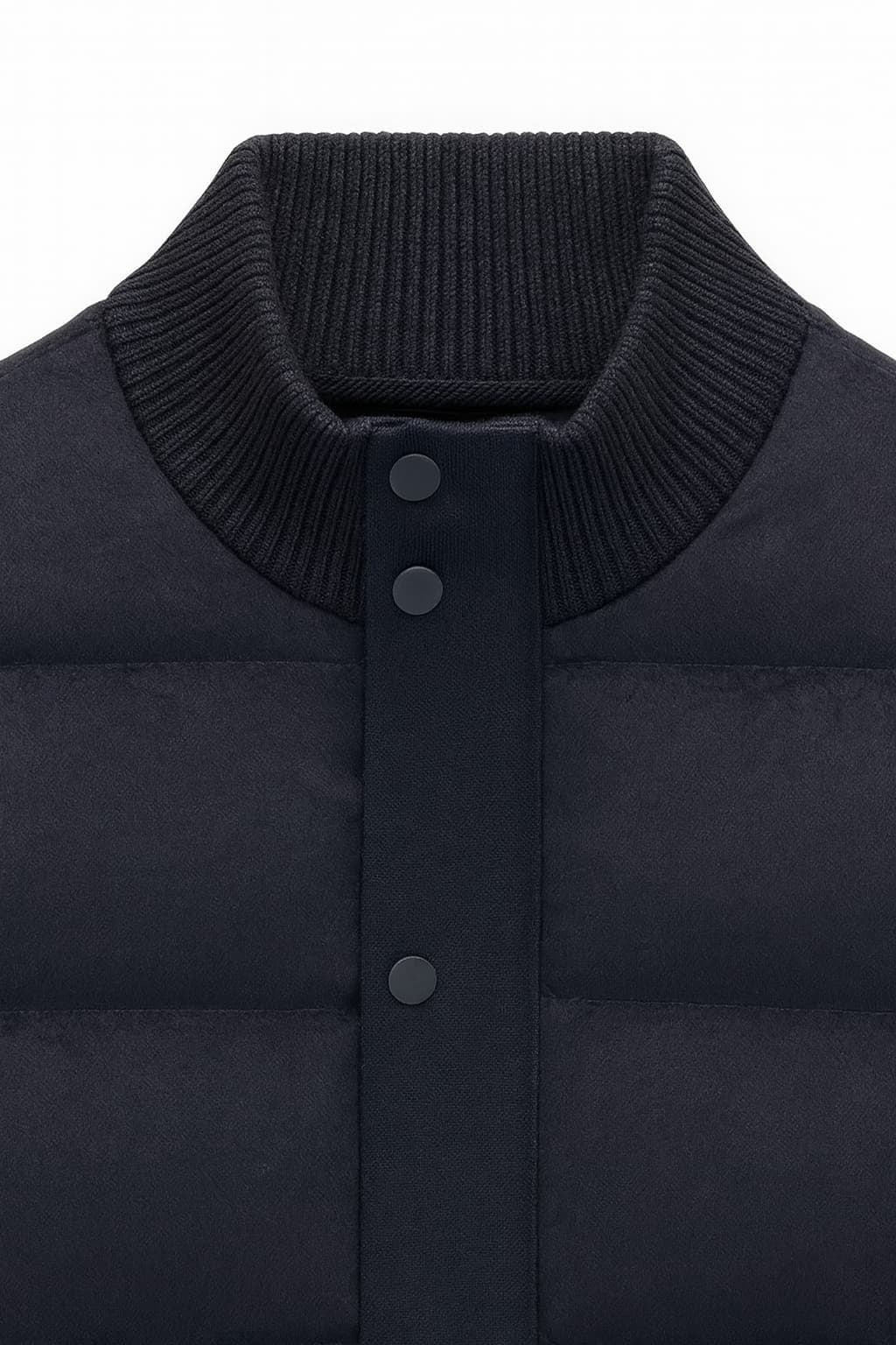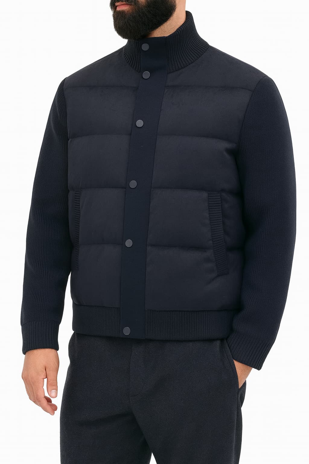 Куртка выполнена в продуманном гибридном дизайне, где гладкая стёганая ткань гармонично сочетается с эластичным трикотажем на рукавах и воротнике. Модель обеспечивает комфорт и тепло благодаря мягкому наполнителю и плотному прилеганию воротника, а также имеет удобные прорезные карманы с трикотажной отделкой. Свободный, но аккуратный силуэт создаёт стильный внешний вид и сохраняет максимальную свободу движений. Материал приятно ощущается на теле, не утяжеляет и отлично держит форму. Отличный выбор для тех, кто ценит спокойную премиальную эстетику и практичность в повседневной одежде.