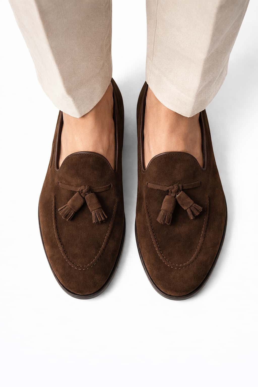 Чтобы лоферы сохраняли аккуратный вид и красивую текстуру замши, рекомендуется очищать их мягкой щёткой для замши после носки, удаляя пыль и мелкие загрязнения. Для защиты от влаги и пятен используйте специальный спрей для замшевой обуви, нанося его заранее на сухую поверхность. Избегайте сильного намокания, а при необходимости дайте обуви высохнуть естественным образом, вдали от источников тепла. Хранить лоферы лучше в сухом месте, используя формодержатели, чтобы сохранить форму и внешний вид.