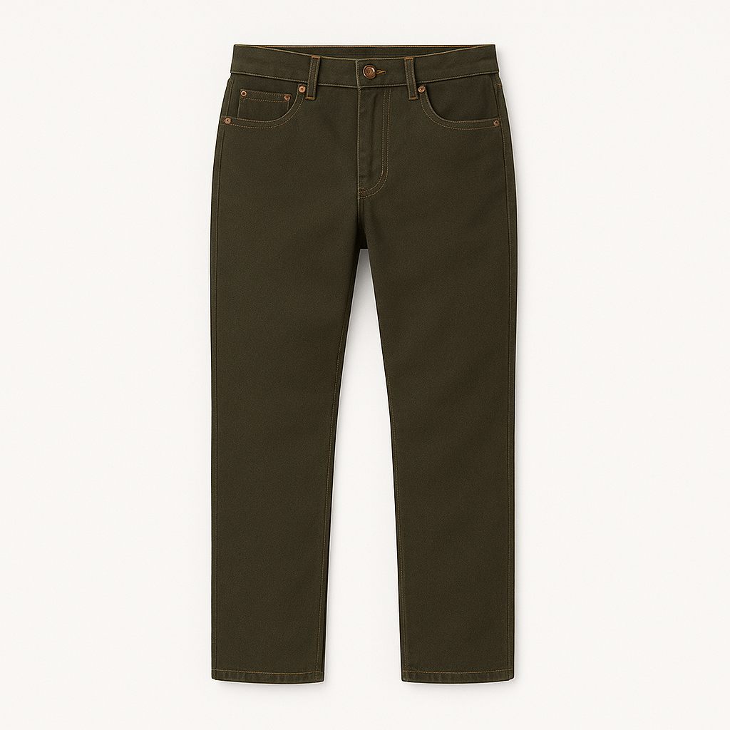 • Детали: классические 5 карманов, молния + пуговица, медная фурнитура, контрастная отстрочка